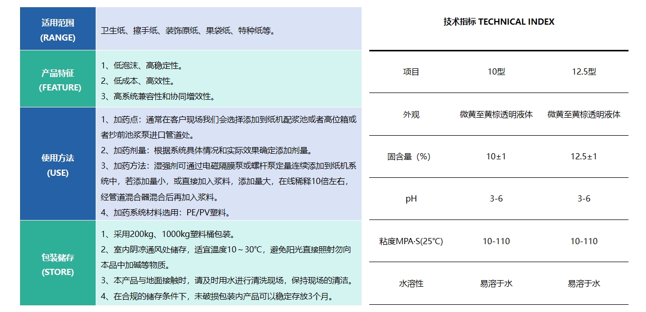 HQ-SN868 濕強劑,是一種陽離子聚多胺酰胺環(huán)氧氯丙烷?脂,本品不但具有較好的濕強效果,而且環(huán)境污染小,無毒害作用。與傳統(tǒng)MF樹脂和UF樹脂相比,它不僅可以在中堿性條件下熟化,而且在提高紙張濕強度的同時,并不會損失紙張的柔軟性、吸收性,特別是生活用紙。